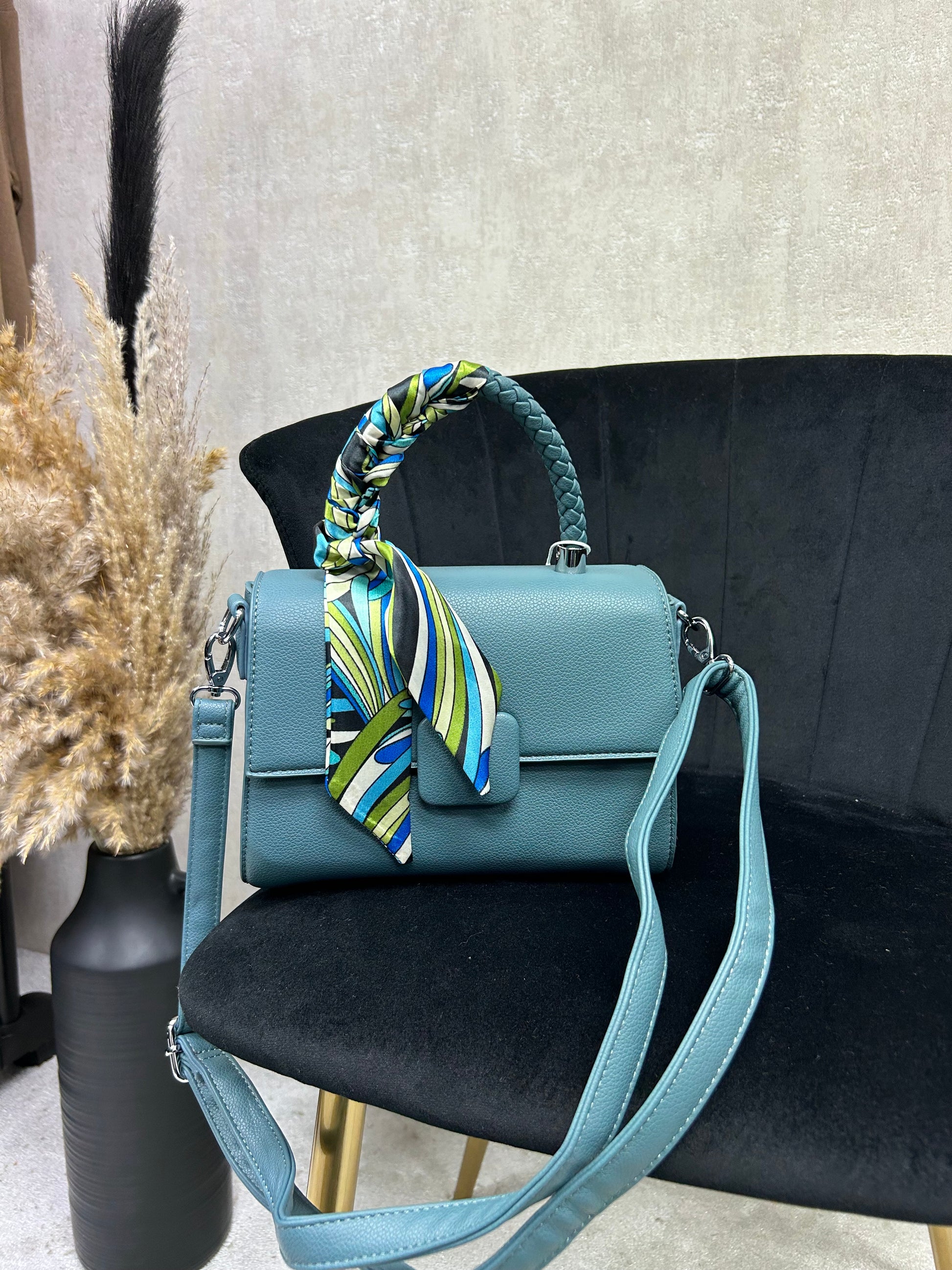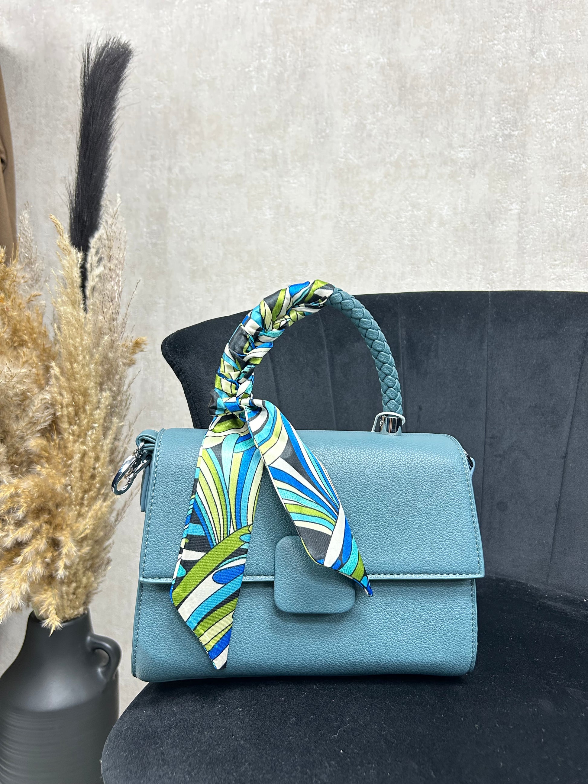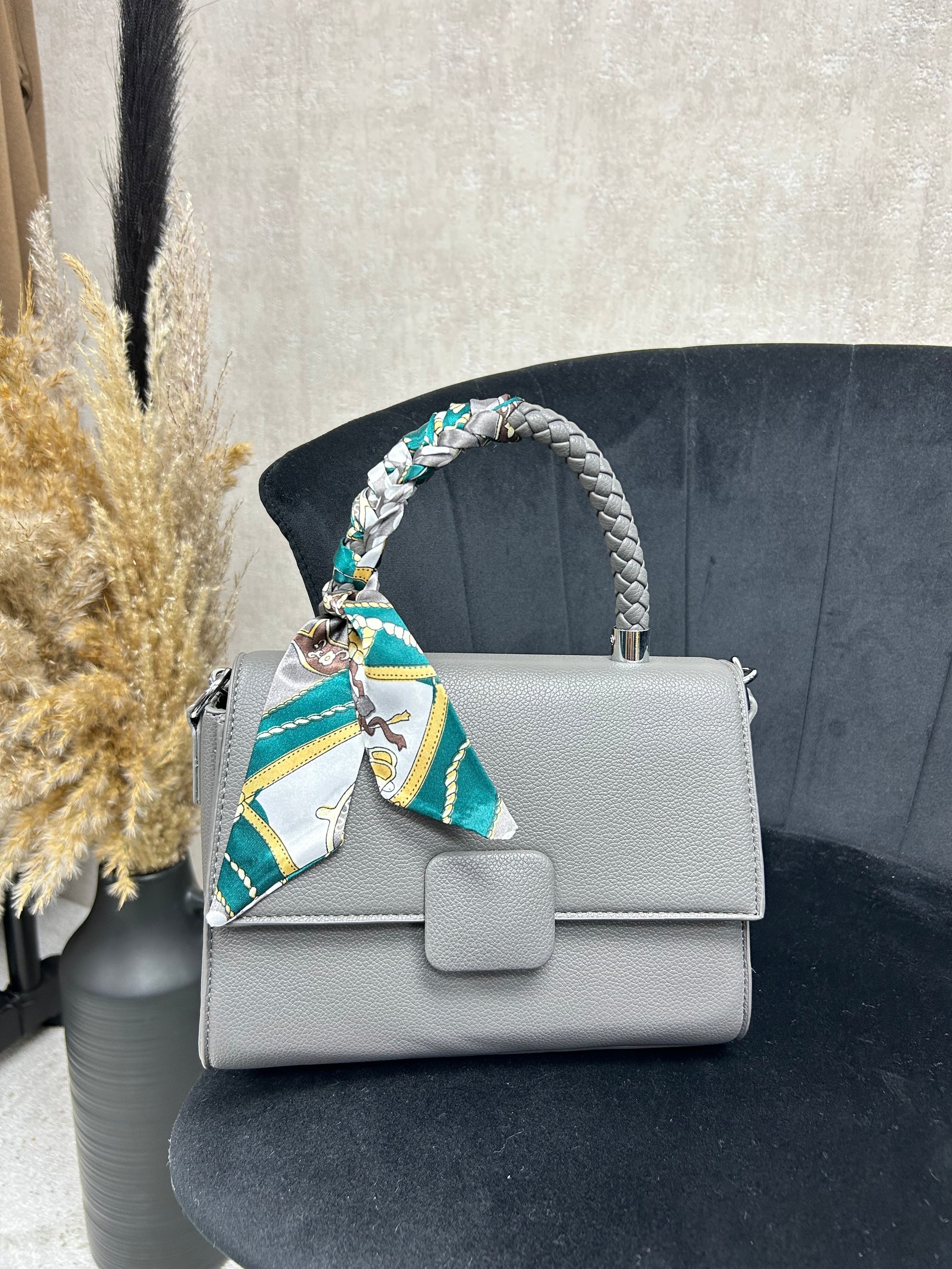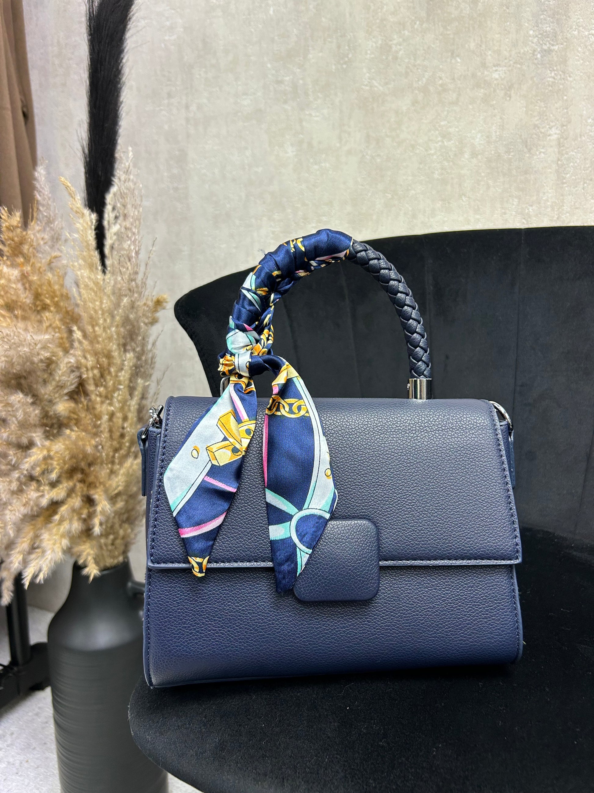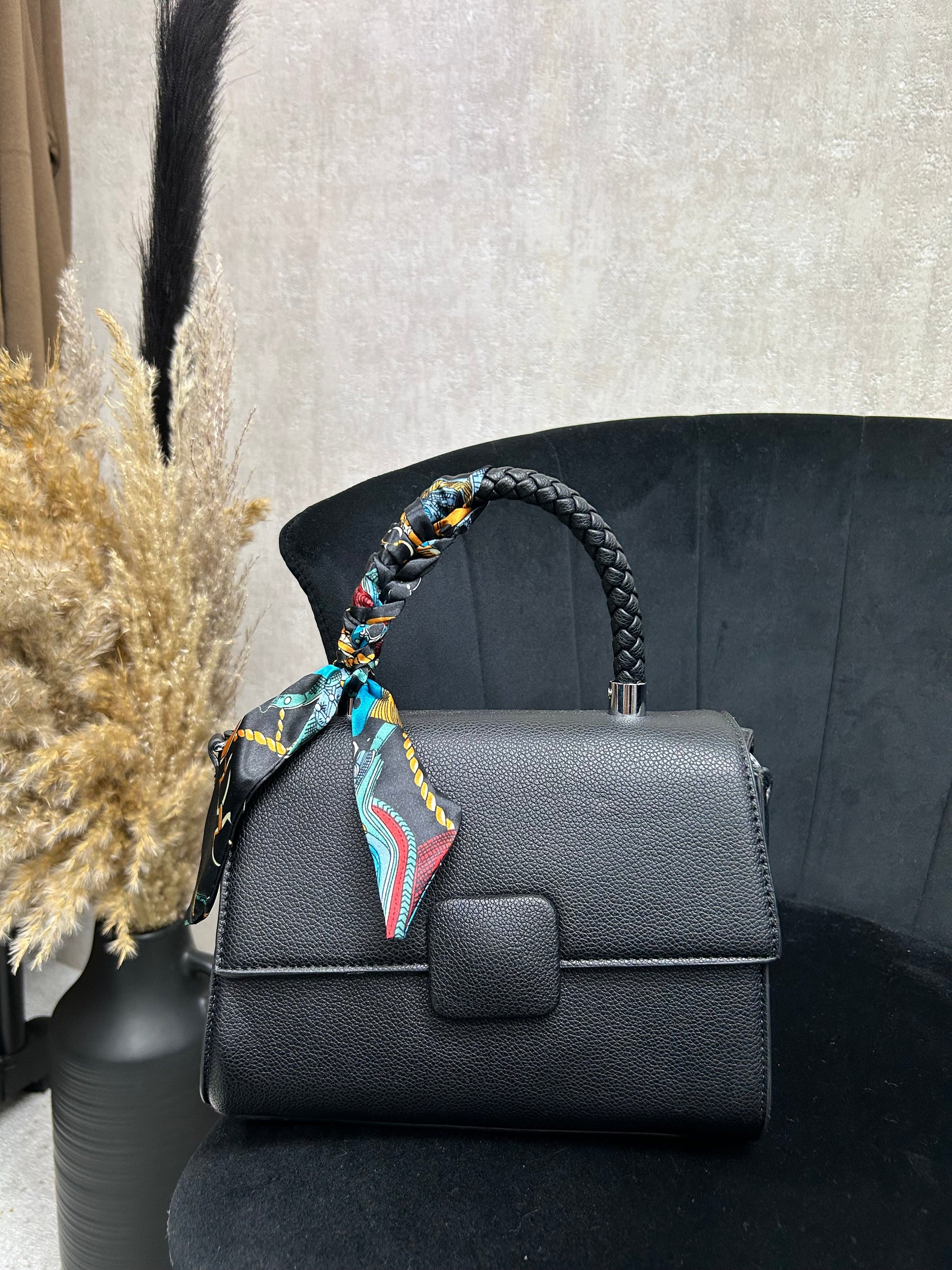 This Leather Plain Handle Scarf Bag is the perfect accessory for any woman on-the-go. Crafted from high-quality leather, it is both stylish and durable. The unique satin scarf on the handle adds a touch of elegance and sophistication to the bag.